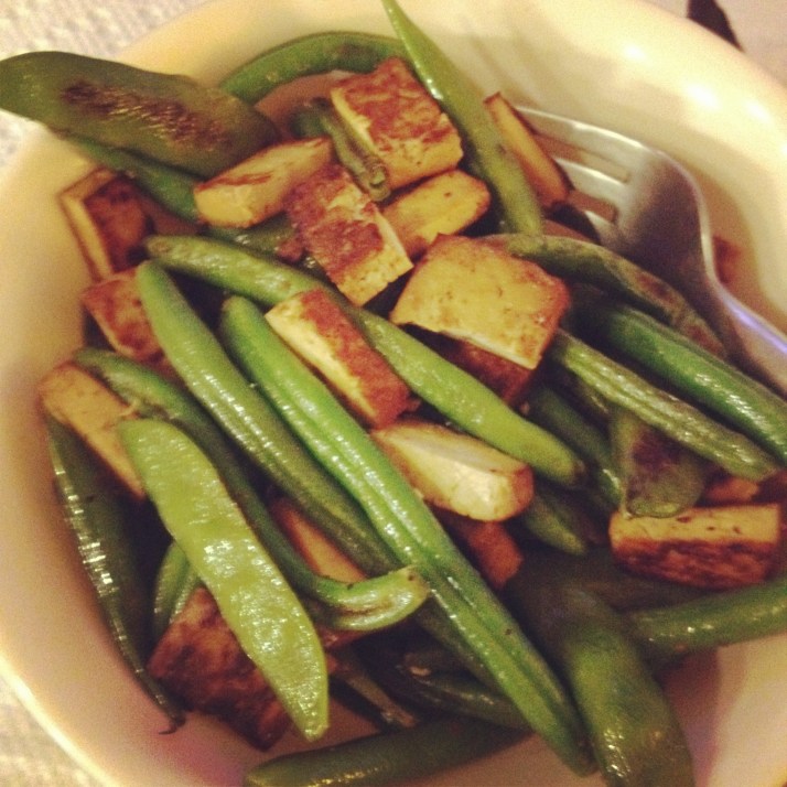 M5: Tofu, green beans, and snap peas seasoned with sea salt. I am loving Snap peas right now so I’ve been adding it to everything :-)