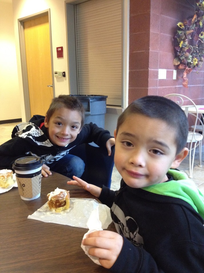 It was crazy! There were so many people! I’ve never seen that many people in one place. We parked about a couple blocks away from the finish line. We had to walk around to find out where to pick up our bibs and shirts. And it rained the whole time. I was freezing cold and wet before the race even started. I was suppose to meet up with my friends and brother but there was just so many people there that we couldn’t really find anyone. We headed towards the finish line to find a spot out of the rain that the boys and Ben’s dad could wait at. Java City was open and we were one of the first people there so we grabbed a table and waited for the race to start.