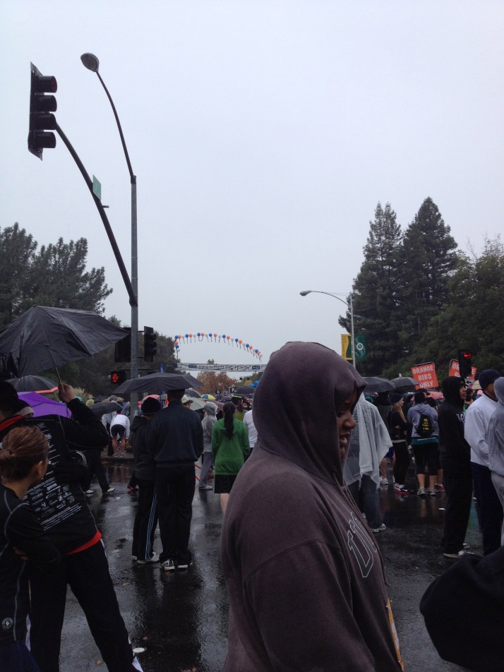 I was kind of dreading this race. I kept hoping that the forecast for rain would change, but it didn’t. This is a big race for Sacramento. There was 27,000 people doing the race. My goal was to beat my last time of 25:30 and I was really worried that I wouldn’t be able to because of all the people. My First 5k was small in comparison (only about 1000 participants).