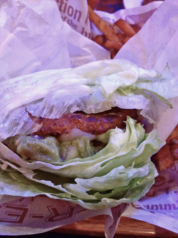 M5: Grandma and Grumpy took us out to dinner at Red Robin. I don’t mind this place because I can lettuce wrap any of their burgers and replace the beef patties with Turkey or Veggie patties :-) I ordered the Guacamole Bacon Burger minus the bacon, wrapped in lettuce and with a Turkey patty. Got sweet potato fries with it but I only had a couple bites and didn’t even touch the rest of it. I was full from my custom Turkey Burger – which I didn’t eat all of either.