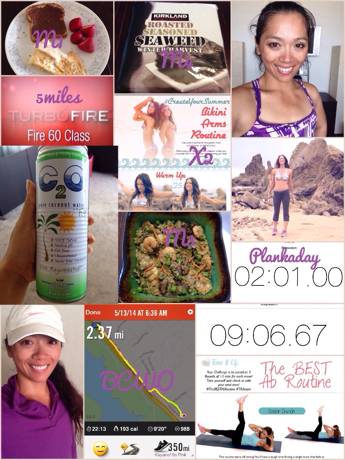 Did a mini grocery shopping then ran errands with Ben. He took an extra day off from going back to work because he didn’t sleep at all the night before. House cleaning then homework with the boys. Did BikiniArms and IttyBitty after putting the boys to bed. I love and hate the BikiniArms routine. Lol. I hate it while I’m doing it. I don’t say nice things to Karena. But I love it when I’m done. My arms burned. Itty Bitty is one of my favorite routines. I remember when I first did this workout and it was soooo hard to do the last exercise. I modified most of the exercises and I struggled with every rep. Now, I can do advanced versions of the moves and do more reps. It feels good to see progress :-) Ended with my plank.