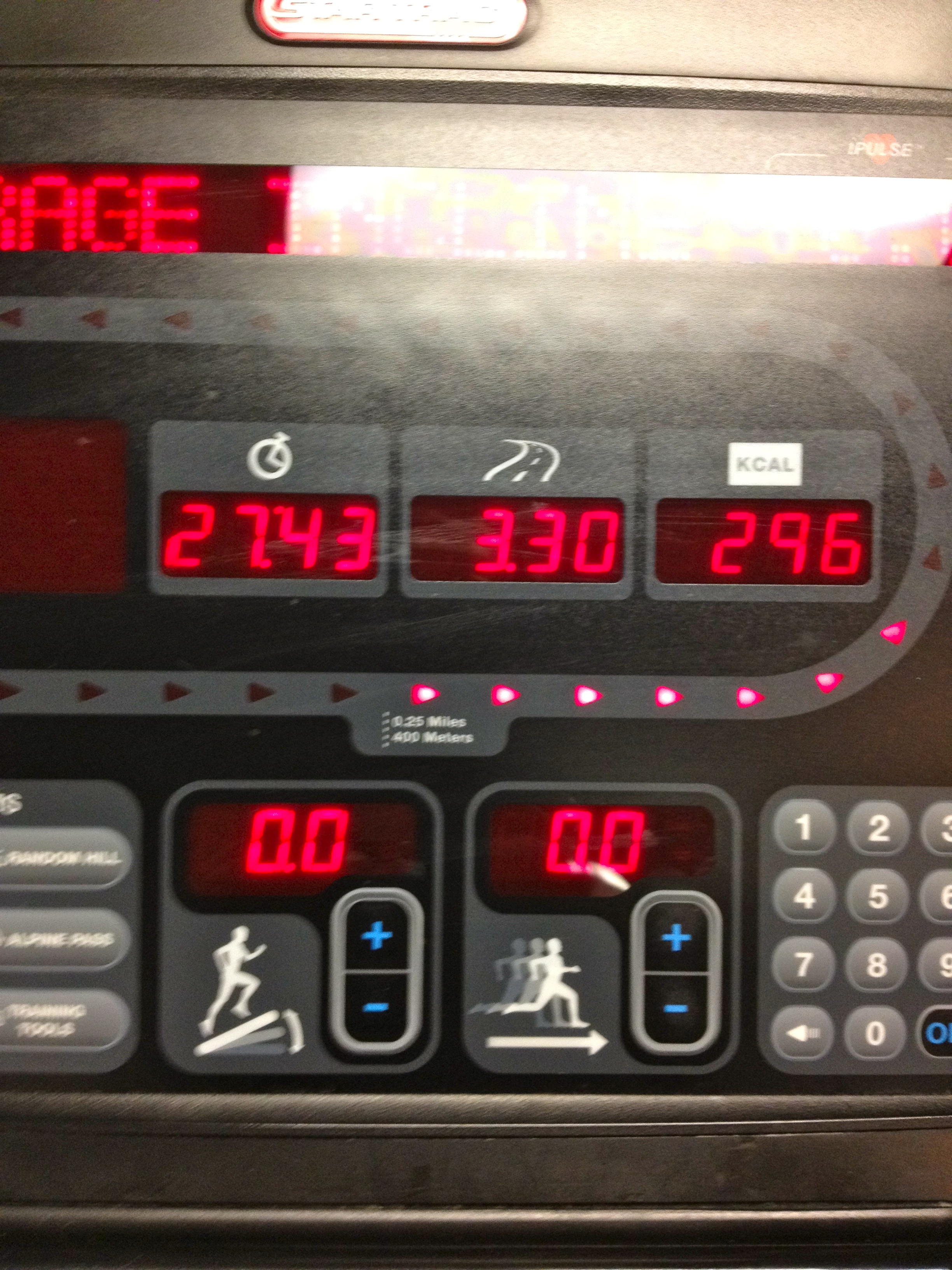 Got up Friday morning and had a Luna bar and lots of water for breakfast. Fridays are when I usually do a long run, but the Mirage’s Cardio room limits the time on the machines to 30 min. Before heading to the gym, I did a 2 min plank. I decided to do the 5K program again but do 6 sets of 1 min sprints. After the first couple sets, I thought that I’d just stick with running, but I hung in there and kept doing the sprint intervals.