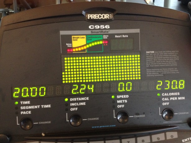 I was worn out from the Turbo Fire workouts and didn’t feel much like doing an afternoon workout. I kept putting it off. It was rainy and that always makes me just want to stay in bed. I fought the urge to just sit on my butt and headed to the gym for a HIIT workout. I did Drop10 Fat Fryer HIIT on the stationary bike. The intervals were short and it’s easier for me to do it on the bike than on the treadmill. So thankful to my TIU sister @JulesTones for letting us know about the Seconds Pro app. I now have an interval timer and it worked perfect for my HIIT workout. It was a very short workout only 10 minutes but I was drenched with sweat and could barely feel my butt and legs at the end. Best of all, I felt great that I did my workout when I didn’t want to :-) Ended with another 2 min plank for PlankADay – this time it was on my elbows. I will be trying to get back to my 5 minute planks again soon.