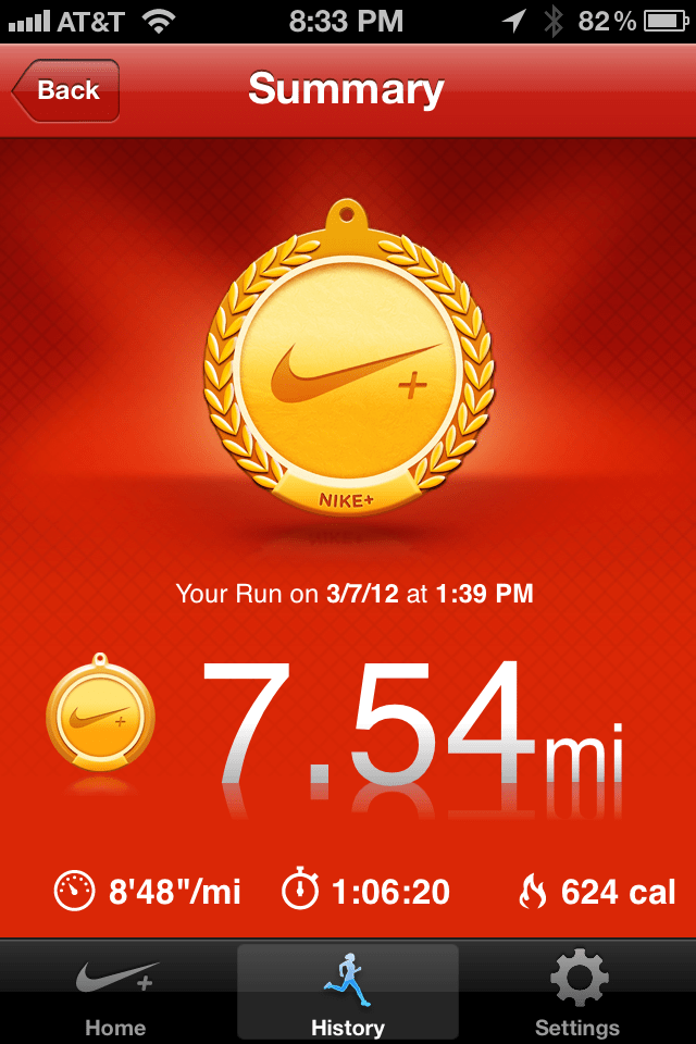 I felt much better after my hour nap.  It was just what I needed to shake that exhausted feeling. Got dressed, filled my water bottle with some Zico, set my Nike+ app to do 7.5 miles and headed out.  It was a windy day but it felt good once I warmed up. I felt really good my whole run. I felt my knees a little bit after the 5.5 miles but they didn’t hurt.  I do like to do my runs earlier because at the time I went today there tends to be more people to weave through – like middle school kids getting out :-/ Then there were the people who decided to feed birds in the middle of trail and take pictures of them without moving at all.